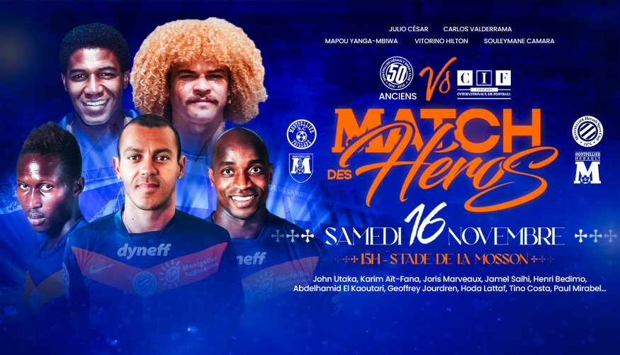 Pour fêter les 50 ans du MHSC rendez-vous le samedi 16 novembre à 15 h au stade de La Mosson pour un match entre des anciennes gloires de la Paillade et les anciens internationaux français du CIF