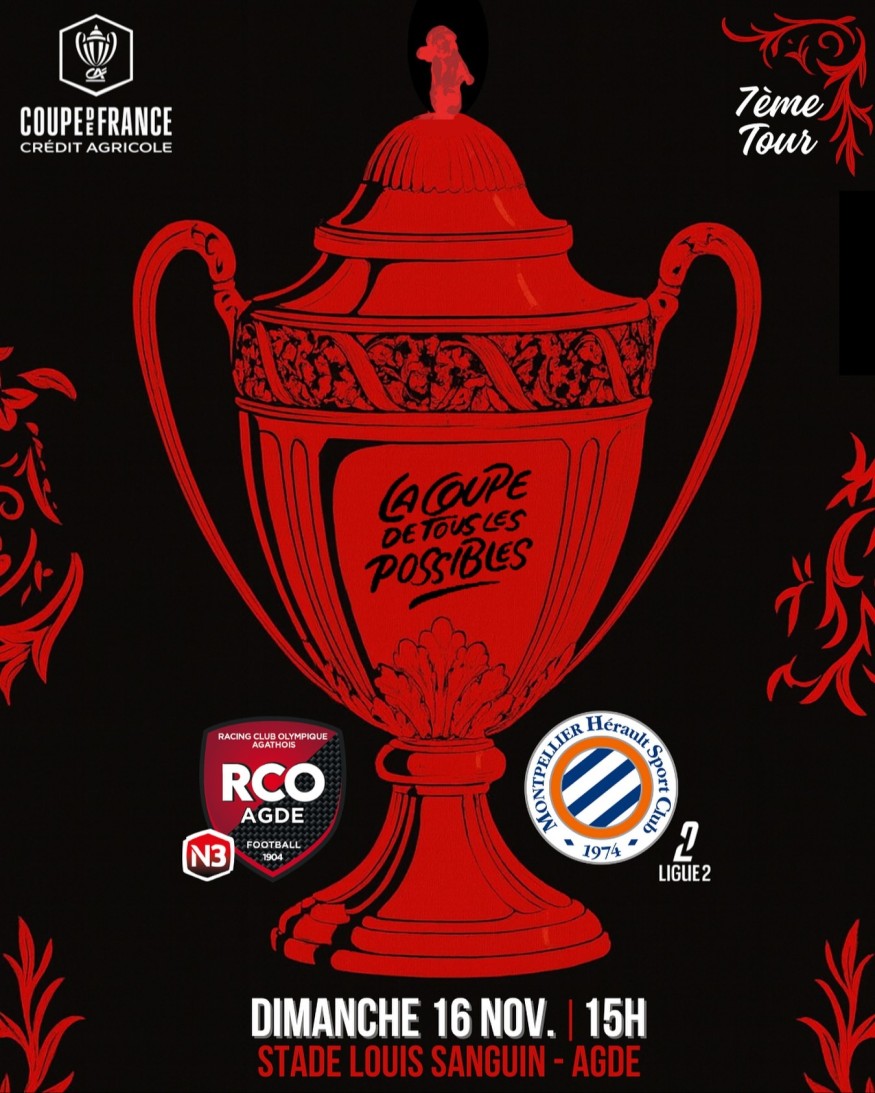 Le club Agathois recevra le Montpellier Hérault SC, pensionnaire de Ligue 2, pour une rencontre qui s’annonce prestigieuse et intense.