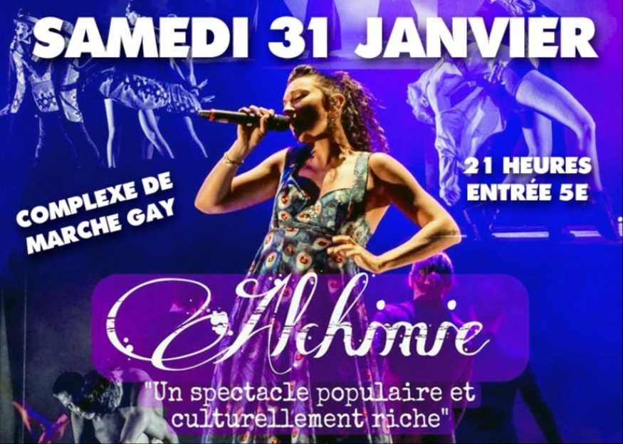 La commission festivités invite le public à clôturer le mois de janvier dans la bonne humeur avec le spectacle Alchimie, proposé ce samedi 31 janvier à 21 h au complexe de Marche-Gay.
