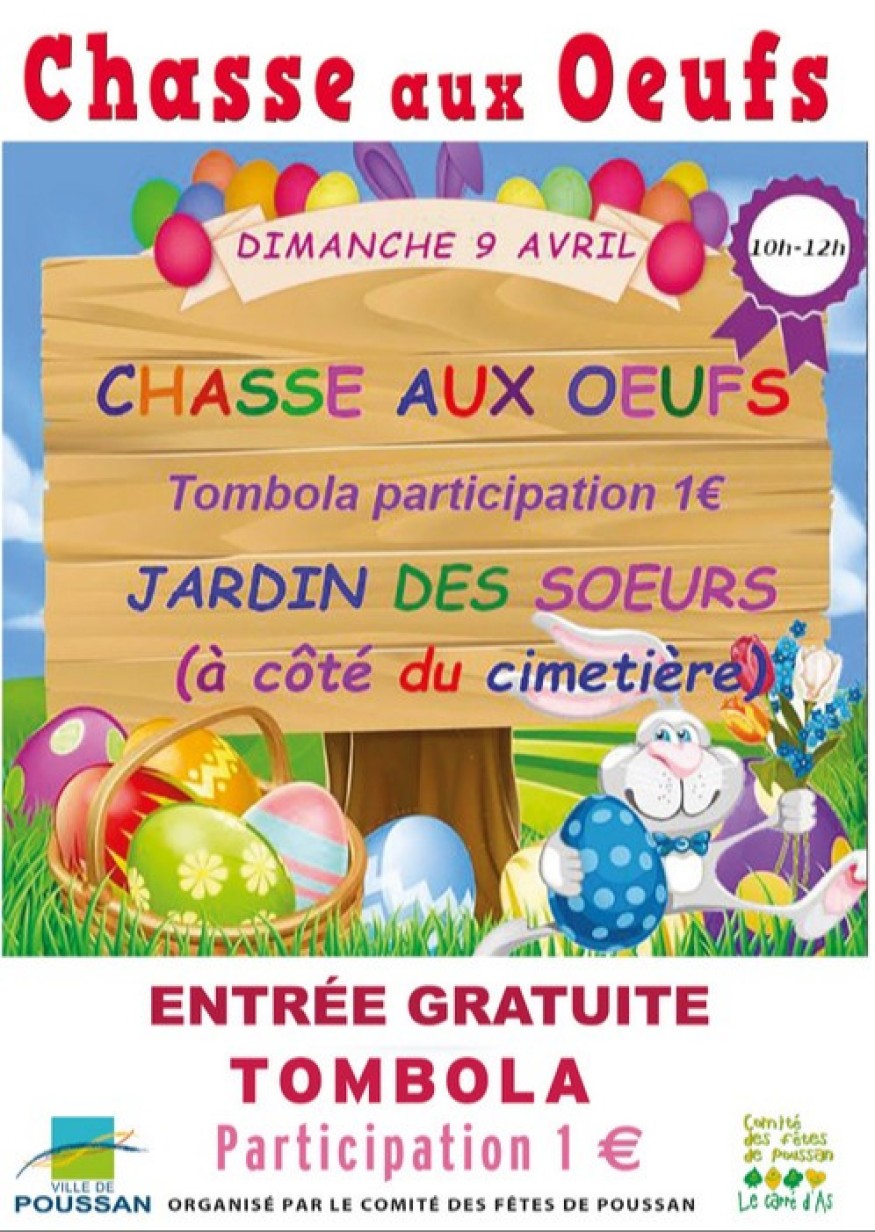 Tous à vos paniers c’est le retour de la grande chasse aux œufs. Dimanche 9 avril de 10h à 12h le Comité des Fêtes Le Carré d'As, en partenariat avec la ville, nous invite à sa grande chasse aux oeufs dans le Jardin des Soeurs.