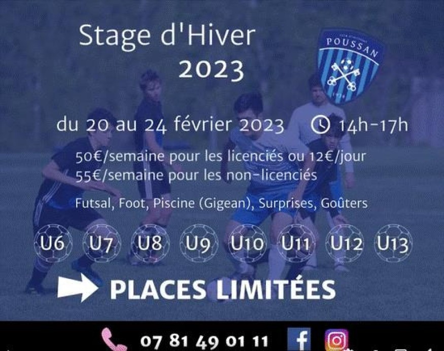 Le CA Poussan Foot organise son stage de football pendant les vacances d’hiver du lundi 20 février au vendredi 24 février 2023