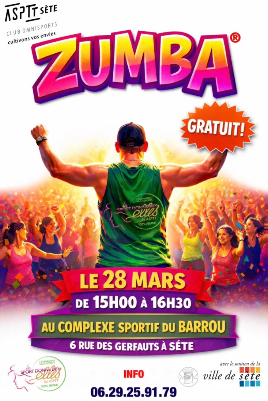 Rendez-vous samedi 28 mars de 15 h à 16 h 30 au Complexe sportif du Barrou pour un cours de Zumba gratuit, ouvert à toutes les femmes, quel que soit l’âge ou le niveau.