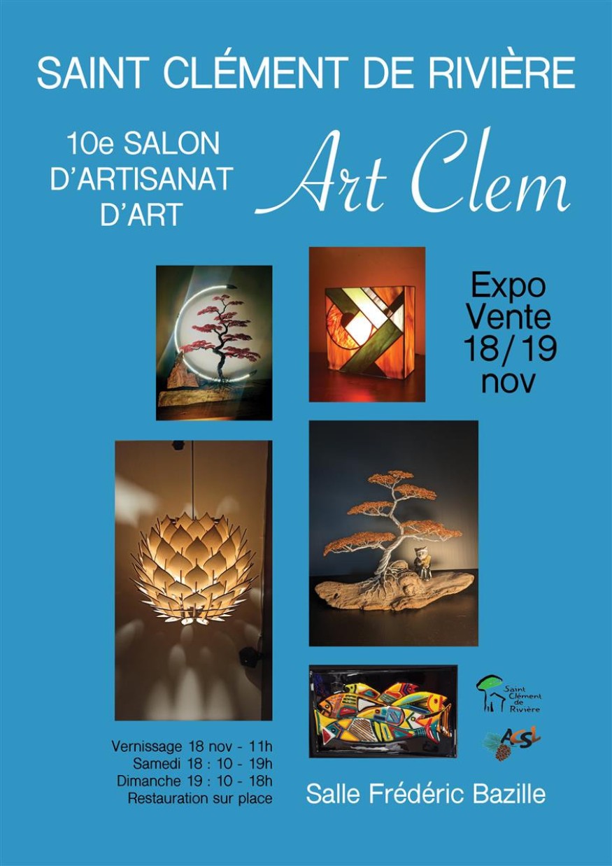 Art’Clem ce week-end La salle Frédéric-Bazille accueillera la 10e édition d’Art’Clem, ces samedi 18 et dimanche 19 novembre, une exposition-vente d’artisanat d’art, qui reçoit chaque année plusieurs centaines de visiteurs.