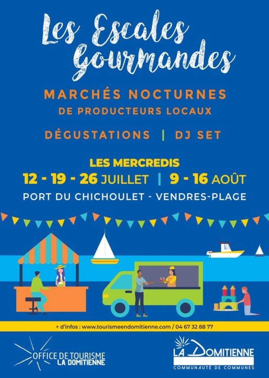 Faites Escale au Port du Chichoulet de Vendres-plage pour profiter des marchés nocturnes, rencontrer artisans et producteurs dans une ambiance musicale festive, sans oublier les jeux et les animations pour les plus jeunes. Animé par DJ Mansamat