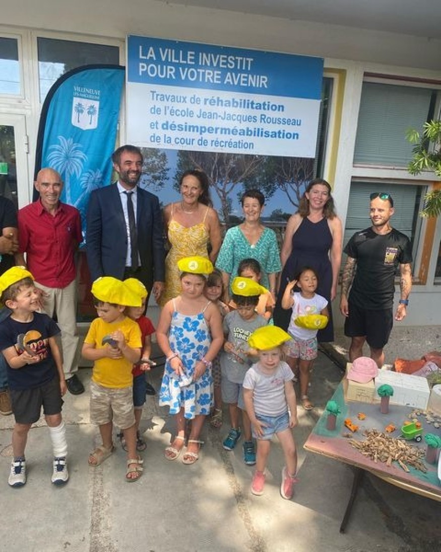 Ce mercredi 5 juillet : Mickael Delafosse , le président de Montpellier Méditerranée Métropole était présent , aux côtés des représentants de la municipalité de Villeneuve-les Maguelone et de la direction de l'école maternelle Jean-Jacques Rousseau, lors de l'inauguration des travaux d'envergure de cet établissement.