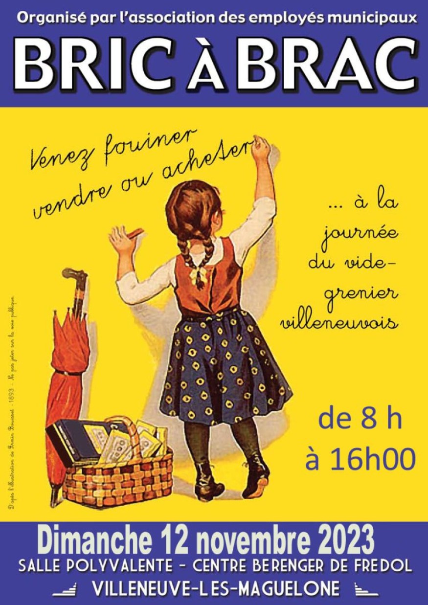 L’association des employés municipaux organise un bric à brac, le dimanche 12 novembre de 8h à 16h, de tout à tout petits prix au centre culturel Bérenger de Frédol, salle Sophie Desmarets.